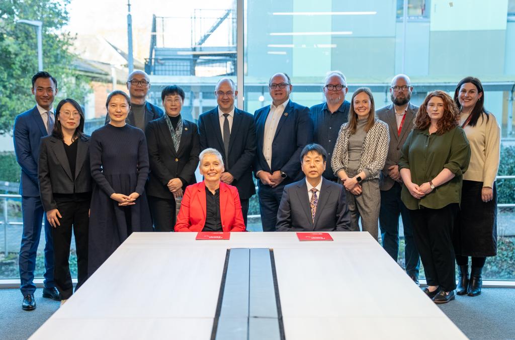 在英国贝尔法斯特女王大学,代表团一行与全球事务副校长Margaret Topping会面,该校国际处处长、医学健康与生命科学学部国际事务部长、生物科学学院院长、国际事务副院长、本科教育主任、研究生教育主任等一行9人参与会谈。双方回顾了在食品安全、食品营养等领域的交流情况,并围绕拓展学生联合培养项目深入探讨,现场签署了3+1+1,4+1等学生联合培养协议。同时,双方表示在已有合作基础上进一步拓宽交流范围,在工程、化学、生物科学等领域加强合作。