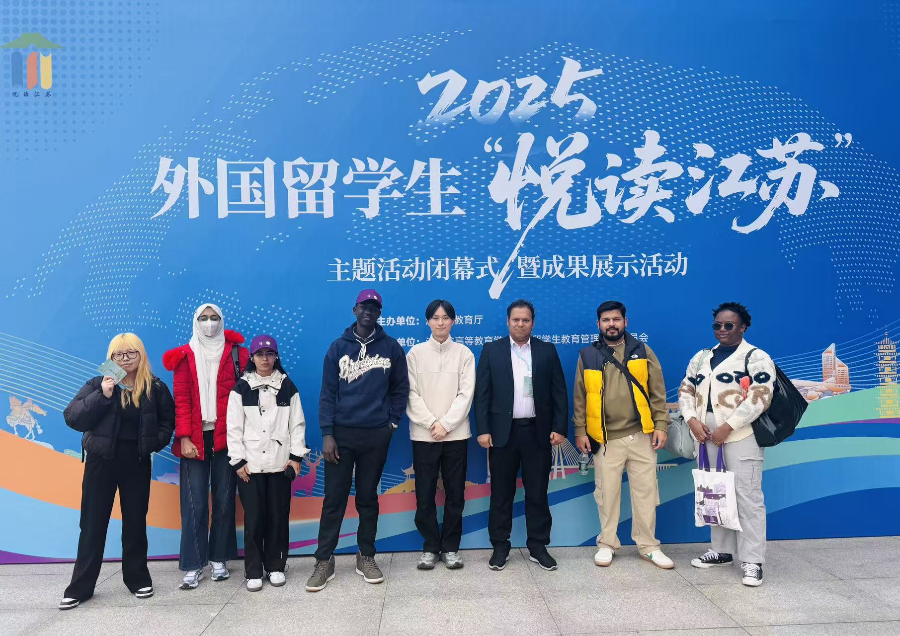 2025年12月19日,由江苏省教育厅主办,江苏省高等教育学会外国留学生教育管理研究委员会协办的2025年外国留学生“悦读江苏”主题活动闭幕式暨成果展示活动在南通大学举办。我校8名国际学生受邀参加,其中巴基斯坦籍留学生朱内德、那达卡、俄拉姆,马来西亚籍留学生吴敏绮,圭亚那籍留学生林旭提交的文学作品、摄影作品及短视频作品,全部入选2025年“悦读江苏”优秀创意作品。此外,巴基斯坦籍马强、埃及籍哈泽、印度尼西亚籍郑健温入选2025年 “我是说‘苏’人”年度人物,圭亚那籍林旭获得提名。